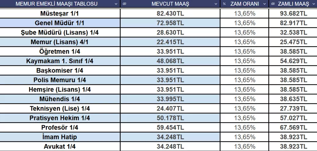 TÜİK’in açıkladığı son verilerle hazırlanan güncel tabloda hem memurlar hem de emekliler için Ocak 2025’teki zamlı maaşların nasıl şekilleneceği ortaya çıkmaya başladı.